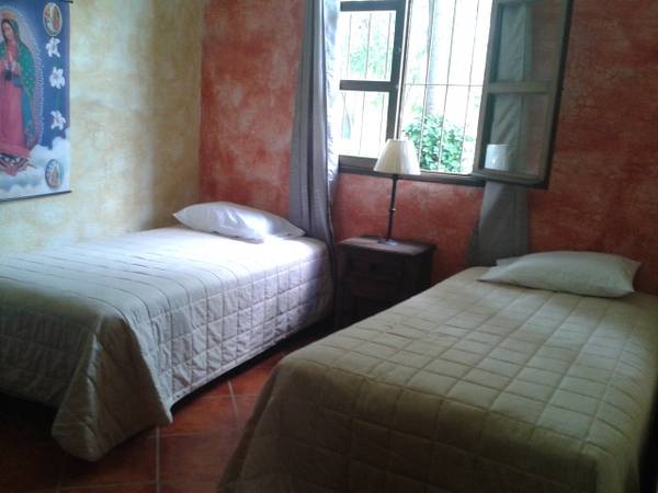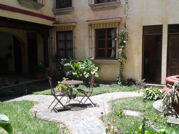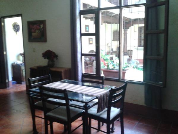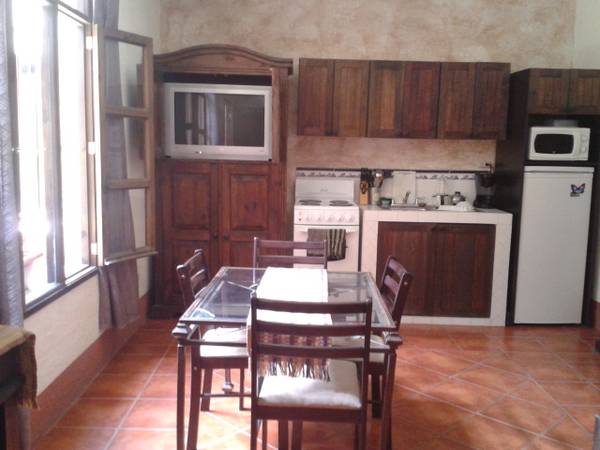 Apartment for rent inside gated community, South side of Town and just 9 blocks from Antigua Guatemala's central square. This apartment is inside a complex of 8 units that share a lovely terrace with great views. There's laundry available in the building. The apartment is furnished, with 2 bedrooms and one full bathroom. Rent of $775.0 includes utilities but electricity that is extra. One year minimum lease. No pets.