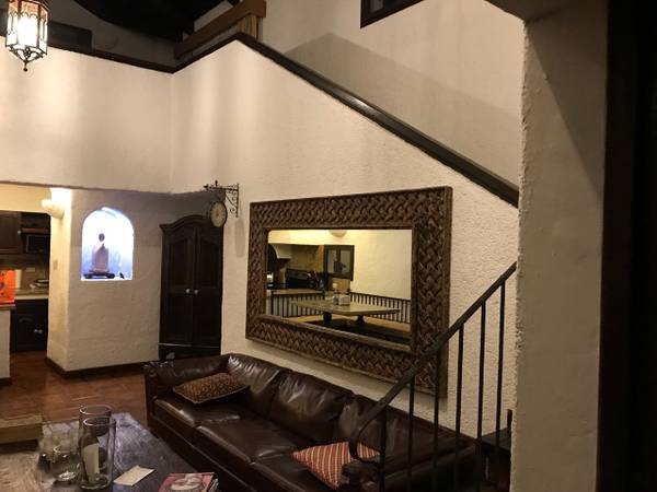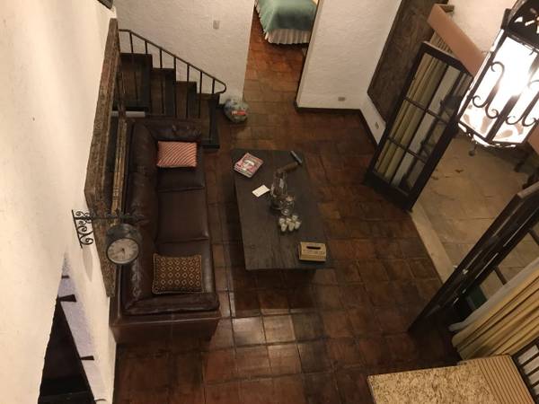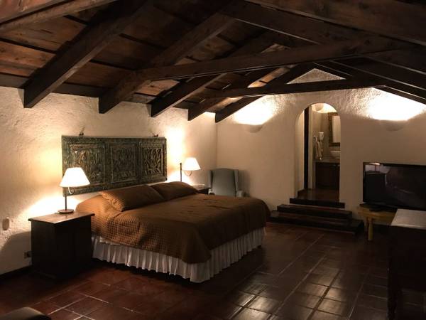 Beautiful big Apartment. Located inside the most exclusive gated community of Antigua (North-East side of Town and just 10 blocks from Antigua Guatemala's central square). On first level, 1 bedroom with its own living, walk in closet and bathroom, with direct access to small yard. Dining, Kitchen, Living, Laundry area, Guest's bathroom and yard. On second level, big bedroom with its own living area and bathroom. This Apt has two parking spaces designated. Rent of $1,400.0 does not include utilities (only Condo's maintenance). Long term lease. A cat can be allowed (if a dog, it will be analyzed depending on factors)