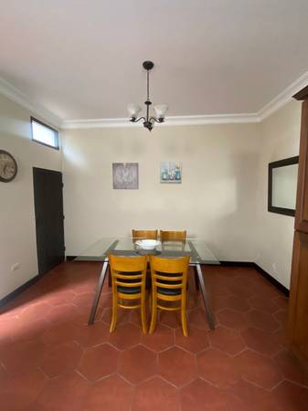 Lovely modern apartment for rent, inside exclusive gated community, South side of Town and only 7 blocks from Antigua Guatemala's central square. Furnished. Long term lease. Living-Dining-Kitchen. Includes washer-dryer. 2 Bedrooms. Closets. 2 Bathrooms. Storage. Small patio. Rent of $1,300.0 includes Condo's maintenance. Internet and Electricity are extra. No pets. No Airbnb.