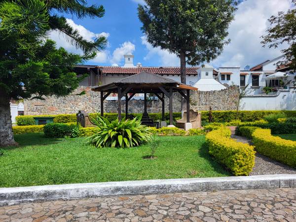 Modern style house, located in exclusive gated community with club house and swimming pool, South side of Town and just 2 Kms. from Antigua Guatemala's central square. 3 levels (3rd. level is terrace with 360 degrees great views). 4 bedrooms and 4.5 bathrooms. Living, Dining, Kitchen, Studio or Office attached to Master's bedroom. Laundry area, storage room. Fine finishes. Small yard with fountain. Open terrace on second level as well, incorporated to corridor and area of bedrooms. Garage. Great investment for $500,000.0