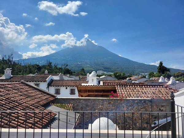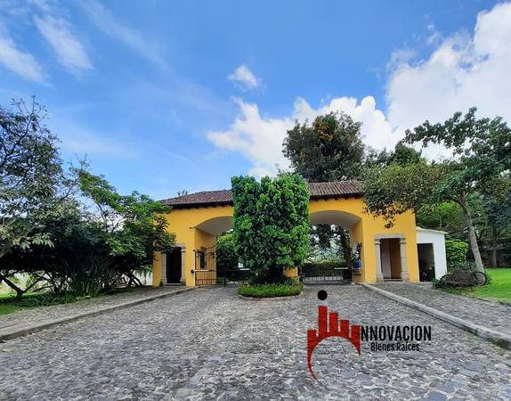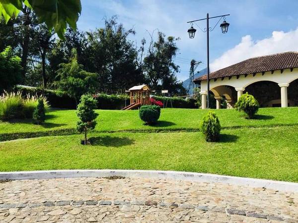 Inside exclusive gated community, with club house, green shared areas and swimming pool, just 1.4 miles from Antigua Guatemala's central square. Great location South side of Town. This is a great investment. A remodeled house with nice finishes. Modern style. 4 bedrooms. Storage. Laundry area. 4 bathrooms. Inner yard with fountain. Upstairs yard and above second level, lovely terrace with 360 degrees magnificent views.