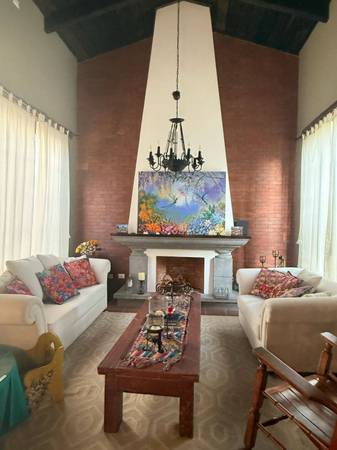 Inside exclusive gated community with green shared areas and swimming pool. South side of Town and just 2 kilometers from Antigua Guatemala's central square. House with 3 bedrooms. Terrace with roof top area and jacuzzi, with great view of volcanoe. 2 spaces for garage. Nice finishes. Small lateral yard and front yard. Great investment.