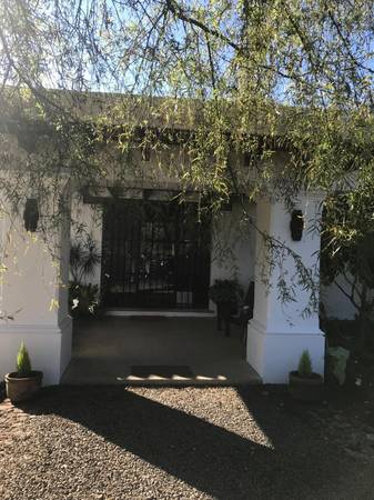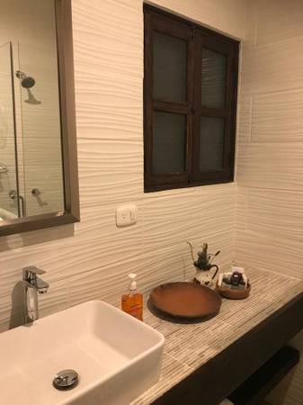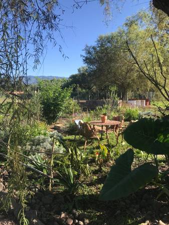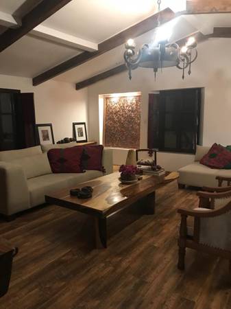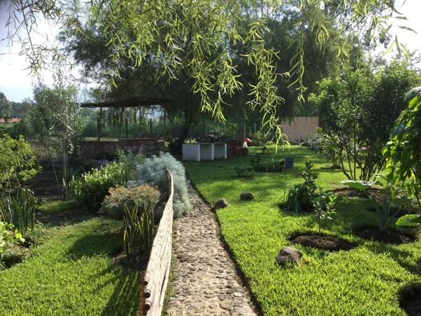 Cozy house with huge garden/trees/plants, and 2 bedrooms. Furnished. Two and a half bathrooms. One level. Laundry area. Living, Dining, Kitchen, parking. Total area of 1,200 square meters. Located South side of Town and just 4.8 Kms. from Antigua Guatemala's central square. House not inside gated community. Farm style. There are other houses in this specific area, surrounded by nature. Quiet and peaceful place.