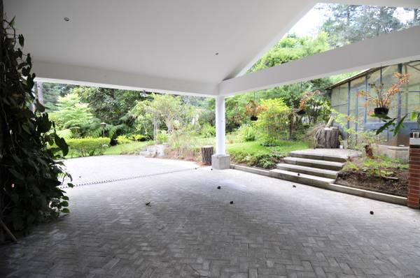 Cochera para dos automóviles y estacionamiento al aire libre para varios carros.