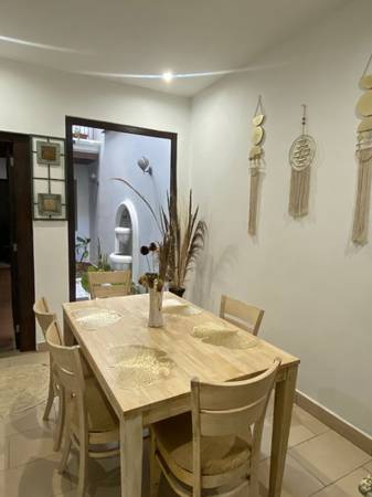 This brand new house is located inside small private complex. $1,350.0 per month (does not include utilities). Furnished. Long term lease. 2 levels and terrace with great views. Small lateral patio. Living, Dining, Kitchen, laundry area, small storage room, studio, garage, 3 bedrooms, closets, 3 bathrooms. Deposit equals to one month's rent. House is South side of Town and just 2 Kms. from Antigua Guatemala's central square.