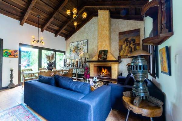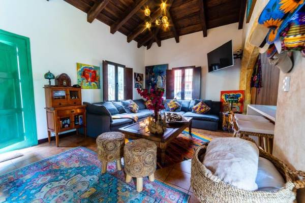 Excellent opportunity. House for sale inside Condo, South side of Town and just 1.9 Kms. from Antigua Guatemala's central square. One level. Yard. Fountain. 3 bedrooms. 2.5 bathrooms. Garage. Livings, fireplace, Dining, Kitchen, laundry area. Nice finishes combining modern and colonial style. Really good investment. The sale of this house includes elec. appliances but not the furniture and decoration.